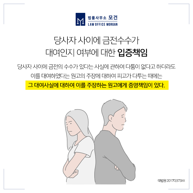 당사자간 금원의 수수가 있었고, 이를 원고는 대여라하고 피고는 대여가 아니라고 반박하는 경우, 그것이 대여금이라는 것은 이를 주장하는 원고가 입증해야 할 책임이 있습니다. 따라서 당시 차용증을 주고받았다거나, 원금과 함께 이자를 약정하였다는 등 그것이 대여금 성격이라는 것을 여러 증거를 통해 입증해야 할 필요가 있습니다. 특히 연인 사이에서는 금전적인 증여 역시 충분히 있을 수 있기 때문에 이를 입증하지 못할 경우 대여금소송은 기각될 수 있습니다.