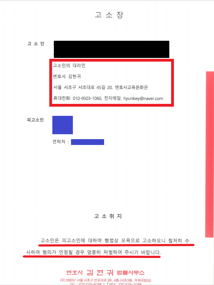 이에 저는 B측이 A에게 용서를 구하고 합의를 보아 공소기각이나 선고유예를 노리는 것이라 생각하였습니다. 하지만 B에게서는 어떠한 연락도 받지 못하였습니다. 이후 알게 된 결과 B는 A에게 어떠한 사과 없이 재판부에 "게시된 글들이 모두 사실이며, 공익적 목적으로 쓰여진 것이므로 정당행위로서 무죄를 주장한다"라고 주장하고 있음을 알게 되었습니다.