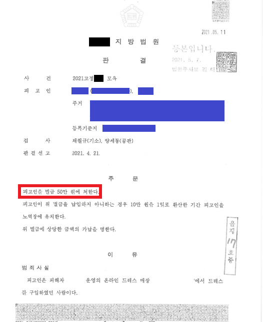 당연한 결과로 B의 모욕 혐의가 인정되어, B에게는 약식명령 벌금형 처분이 내려졌습니다.