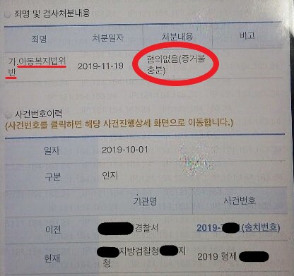 그 결과 아래와 같이 검찰에서 최종 무혐의 처분을 받게 되었습니다.