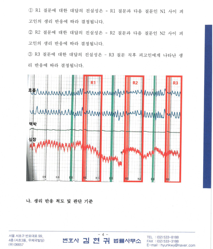 셋째로 그 생리적 반응에 의하여 피검사자의 말이 거짓인지 아닌지가 정확히 판정될 수 있다는