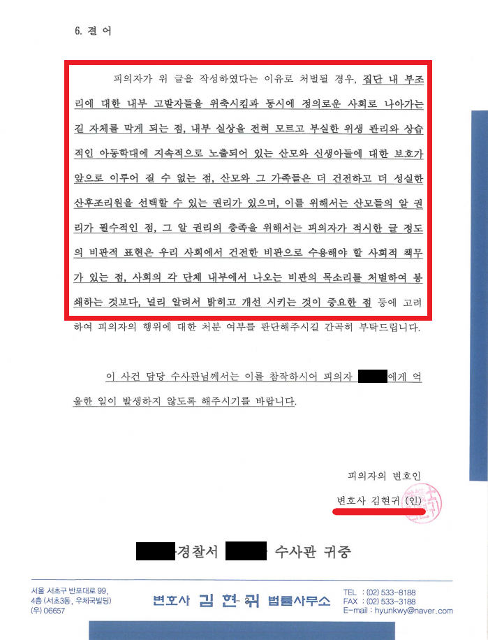 현재 유사한 문제로 고민중이라면, 광고나 규모가 아닌, 실제 의견서와 결과로 보여주는 변호사를 찾는 것이 중요합니다. 부산시 산부인과 사건의 산모 또는 국민청원에 내부고발을 하였다가 보복성 고소를 당한 분이 있다면 주저마시고 상담 전화 주십시오. 억울한 모든 사람이 일상으로 돌아갈 수 있기를 바라며 글을 마무리 합니다.