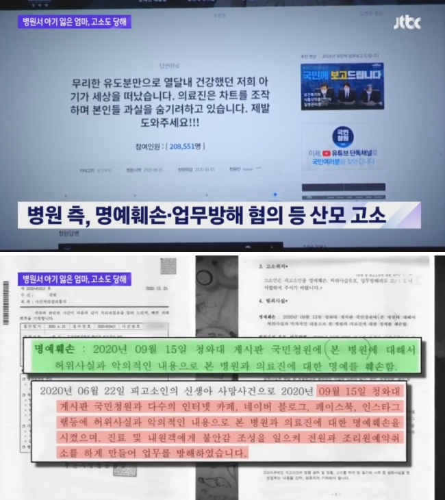2021. 6. 15. jtbc 기사로 안타까운 사연을 접하였는데요. 산부인과 분만 사고로 아기를 잃은 산모가 국민청원에 해당 사건에 관한 글을 올렸다가 고소당하였는 것입니다. 마침 제가 진행해서 무혐의를 받은 사건이랑 완전히 똑같은 것 같아 위 사건을 소개한 후, 어떻게 해결해야 할 지에 대해서 설명 드리려고 합니다.