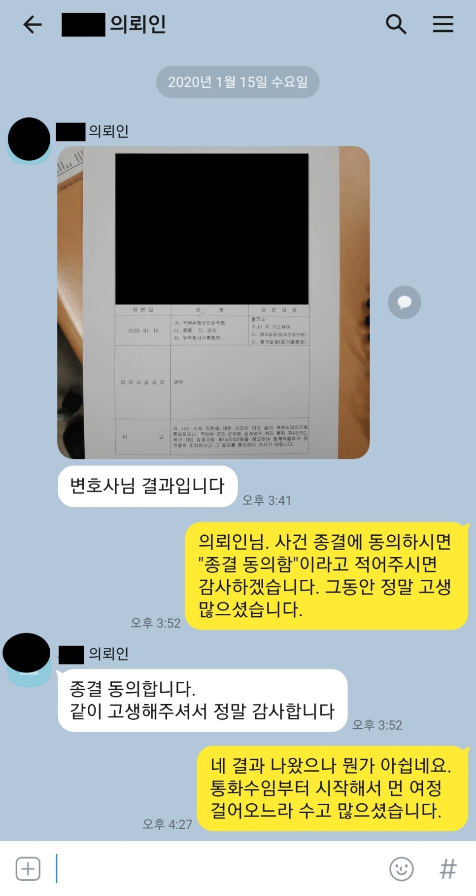 마지막으로 만일 과장되거나 허위의 신고로 인하여 의뢰인에게 형사 처벌 및 군대 내 징계가 내려질 시 승진, 공무원 연금 부분에서 치명적인 타격을 입을 수 있는 급박한 상황이었습니다.
