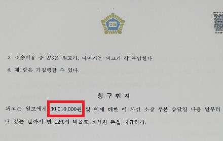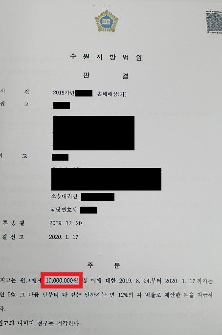 총 두 차례에 걸친 답변서 제출, 두 차례의 변론기일 참석을 통하여 위 내용을 잘 피력하였습니다. 그 결과 원고의 청구 금액 3천1만원 중 1천만원만 인용되었기에 2/3에 해당하는 금액인 2천 1만원을 기각시키는데에 성공하였습니다.