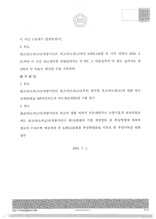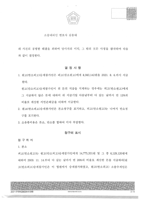 이에 엠메이대부 유한회사는 더 이상 A씨의 카드대금채무를 입증할 수 있는 직접증거를 제출할 수 없는 상황이었고, 이에 엠메이대부 유한회사의 동의하에 법원은 엠메이대부유한회사가 A씨에 대한 청구를 모두 포기하고, A씨의 금융기관 계좌에서 출금하여 간 약 890만원을 전부 반환하라고 화해권고결정을 하게 되었습니다.