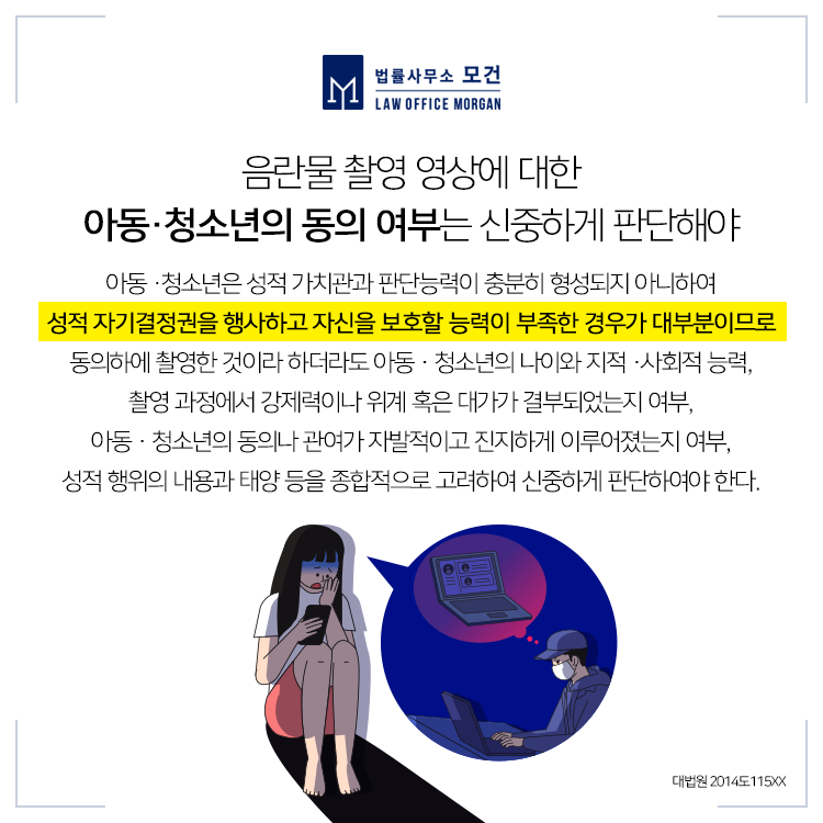 우리나라는 디지털 강국이라 불리는만큼 스마트폰이나 인터넷을 사용하여 누구나 디지털상으로 여러 일들을 해결 가능합니다. 하지만 기술이 발전한 만큼 성인뿐만 아니라 미성년자들까지 쉽게 온라인 음란물에 노출되기 쉬워졌는데요. 특히 SNS나 스마트폰 어플을 통하여 미성년자에 의한 성범죄가 은밀하게 벌어지고 있으며, 직접 음란물을 제작하거나 소지·배포하는 등 그 범죄의 범위도 점점 넓어지고 있습니다.