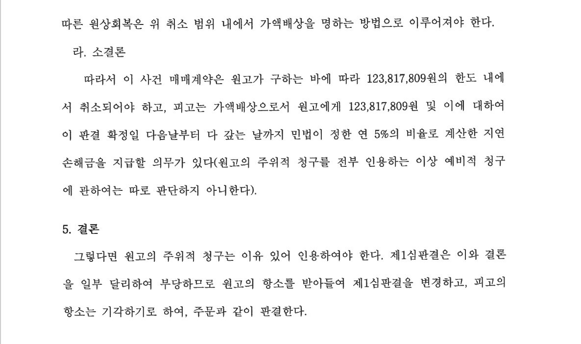 항소심 재판부는 위와 같은 주영재 변호사의 주장을 전부 받아들여 1심을 취소하고, 원고가 구하는 전액에 관하여 사해행위 취소 및 가액배상을 인용하였습니다.