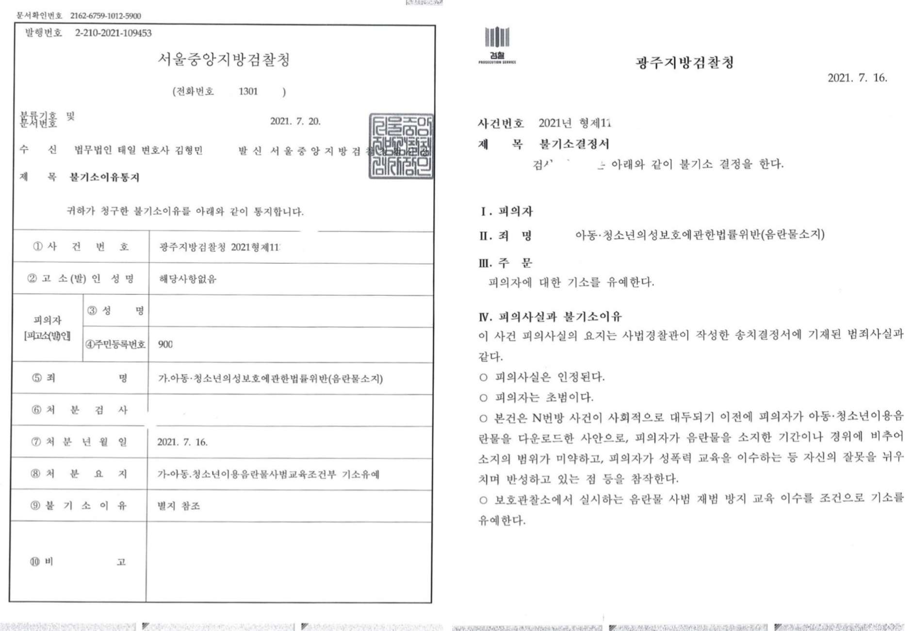 105. 성인에 대해서도 기소유예, 선고유예가 나오기도 하고 최근 사례가 더 늘어났음