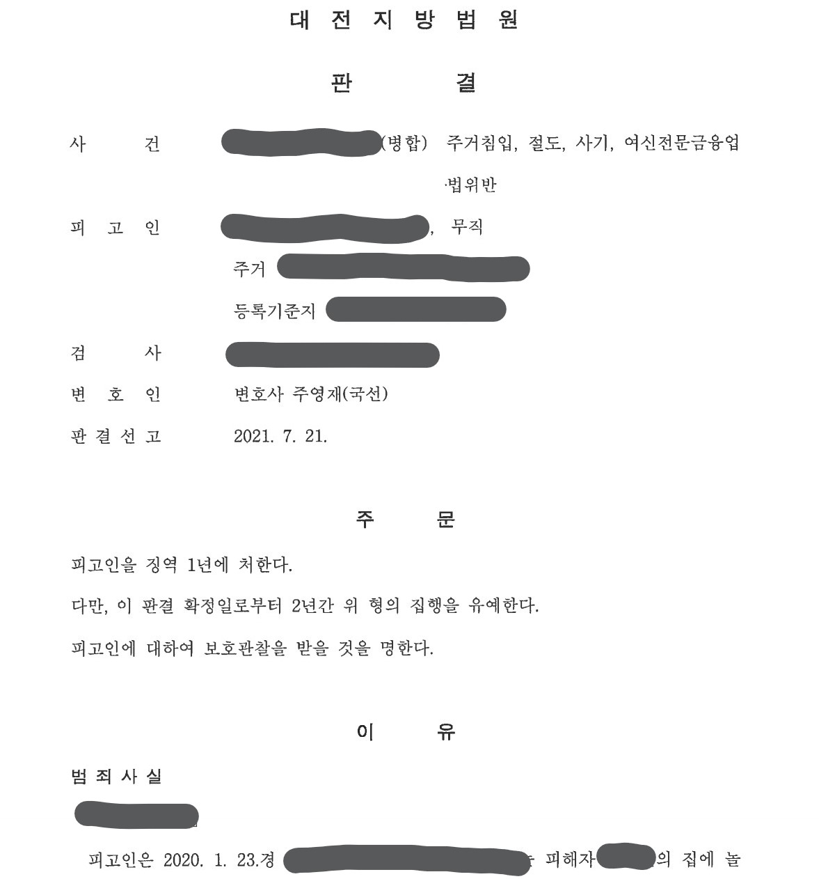 최근 주영재 변호사가 주거침입, 절도, 사기, 여신전문금융업법위반죄로 기소된 사건에서 집행유예를 이끌어낸 사례가 있어 소개해드리겠습니다.