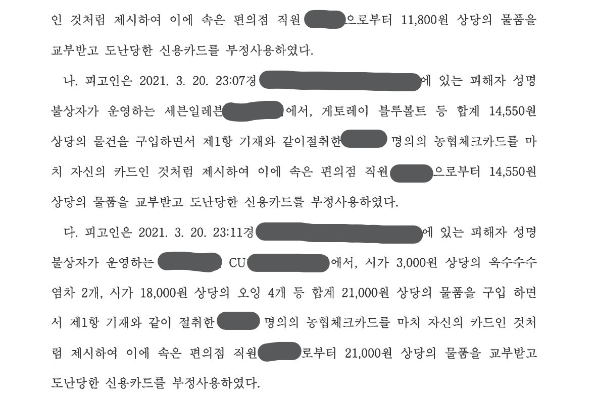 이후 피고인은 지갑에 들어있던 신용카드를 이용해 필요한 물품을 구매하였는데 며칠 후 경찰에 체포돼 구속됐습니다.