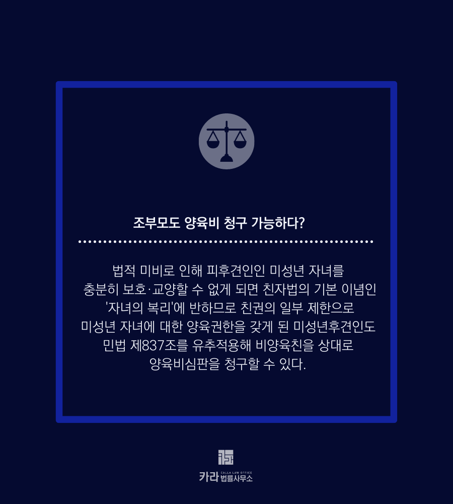 이러한 대법원의 판결은 양육과 관련해 민법의 기본 취지인 '자녀의 복리'에 우선한 결정을 위해 민법 제837조 이혼과 자의 양육책임 조항을 보다 유연하게 적용한 판결이어서 더욱 의미가 크다고 하겠습니다.