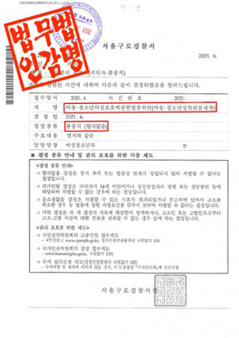 서울구로경찰서는 이 사건에 대해 다음과 같은 사유로 불송치 결정 처분을 하였습니다.