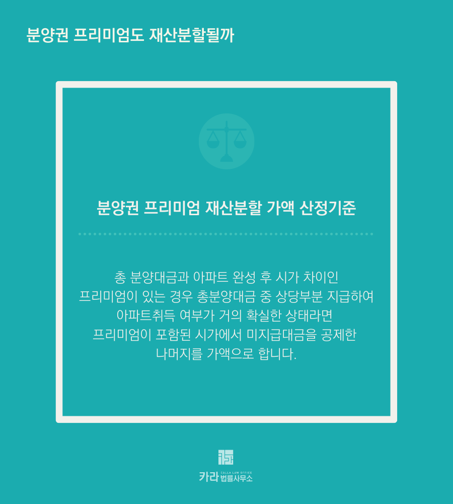 그러나 만일 감정 등을 통해 분양권 시세를 명확히 확인할 수 있다면, 프리미엄 금액도 재산 분할 대상에 포함할 수 있다고 보고 있습니다.