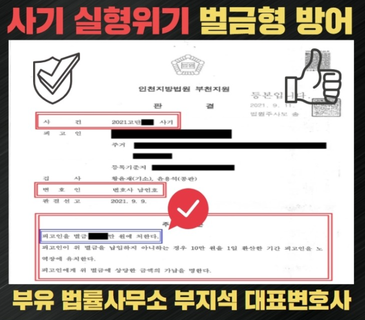 하지만 부유 법률사무소의 적극적인 방어 전략을 통해 징역형 실형을 피할 수 있었고, 단순 벌금형으로 사건을 마무리 지을 수 있었습니다.
