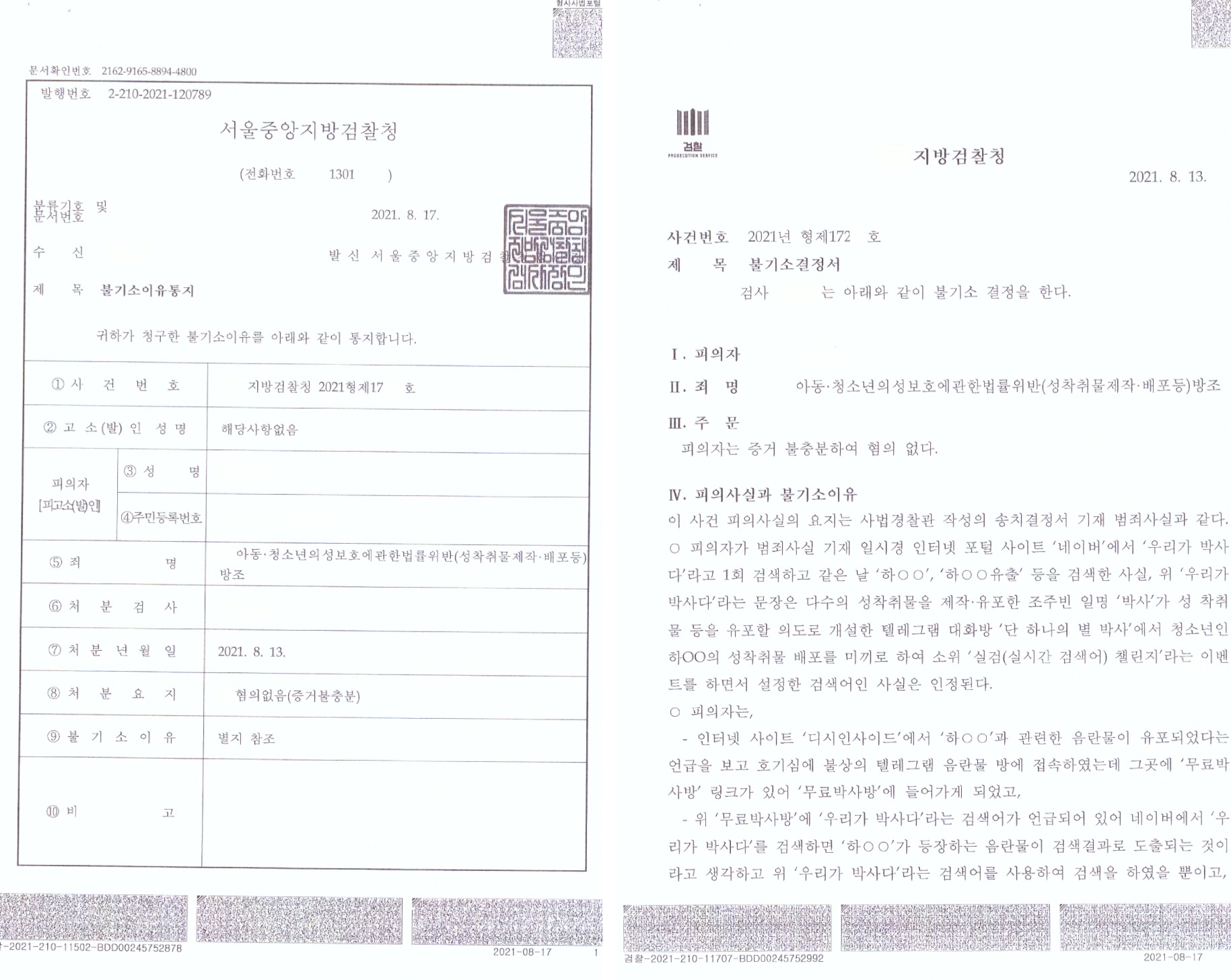 2. 네이버 검색어 이벤트 아청물 제작배포 방조죄 무혐의