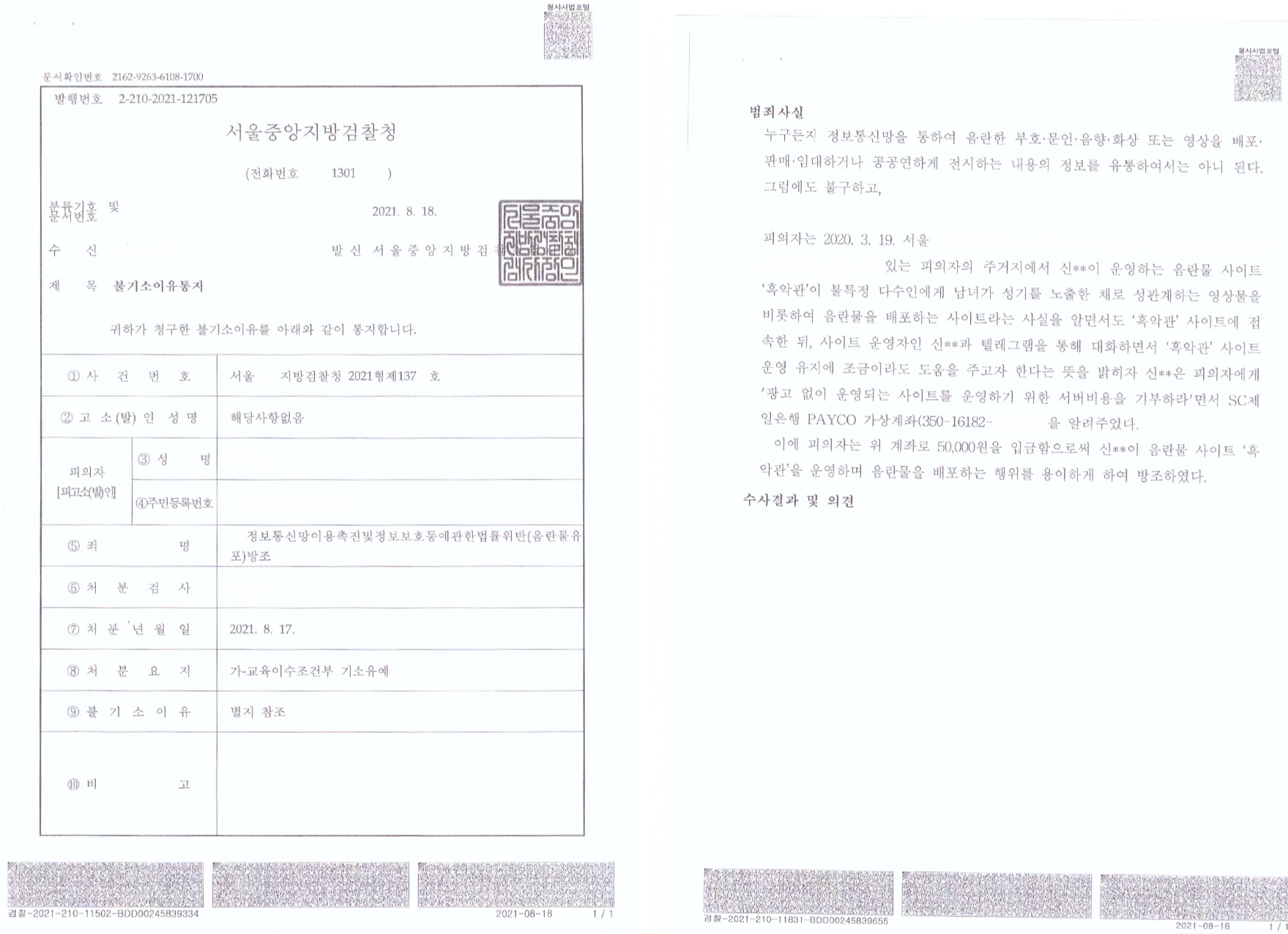 3. 정통법위반 음란물유포 기소유예