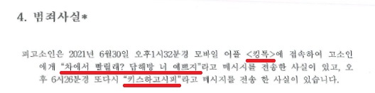 며칠 뒤, A씨는 B씨와 대화를 나누다가 B씨에게 "차에서 빨릴래? 답해방 너 예쁘지", "키스하고시퍼"라는 메시지를 보냈습니다. 그런데 B씨가 아무런 말도 없이 대화방에서 나가더니, 며칠 뒤 경찰로부터 "B씨가 '킹톡'에서의 일로 고소를 하여 조사를 받아야 한다"라는 전화를 받게 되었습니다.