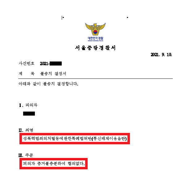 이러한 저의 조력을 바탕으로 A씨는 '불송치(혐의없음)' 결정을 받음으로써 성범죄 전과자가 될 위기에서 벗어날 수 있었습니다.