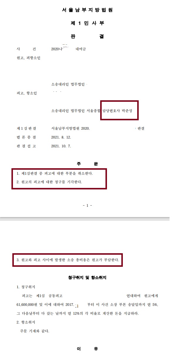 - 실상은 투자금 전달일 뿐이었으나 대여금 청구를 당하여 "1심 전부패소"했던 상황