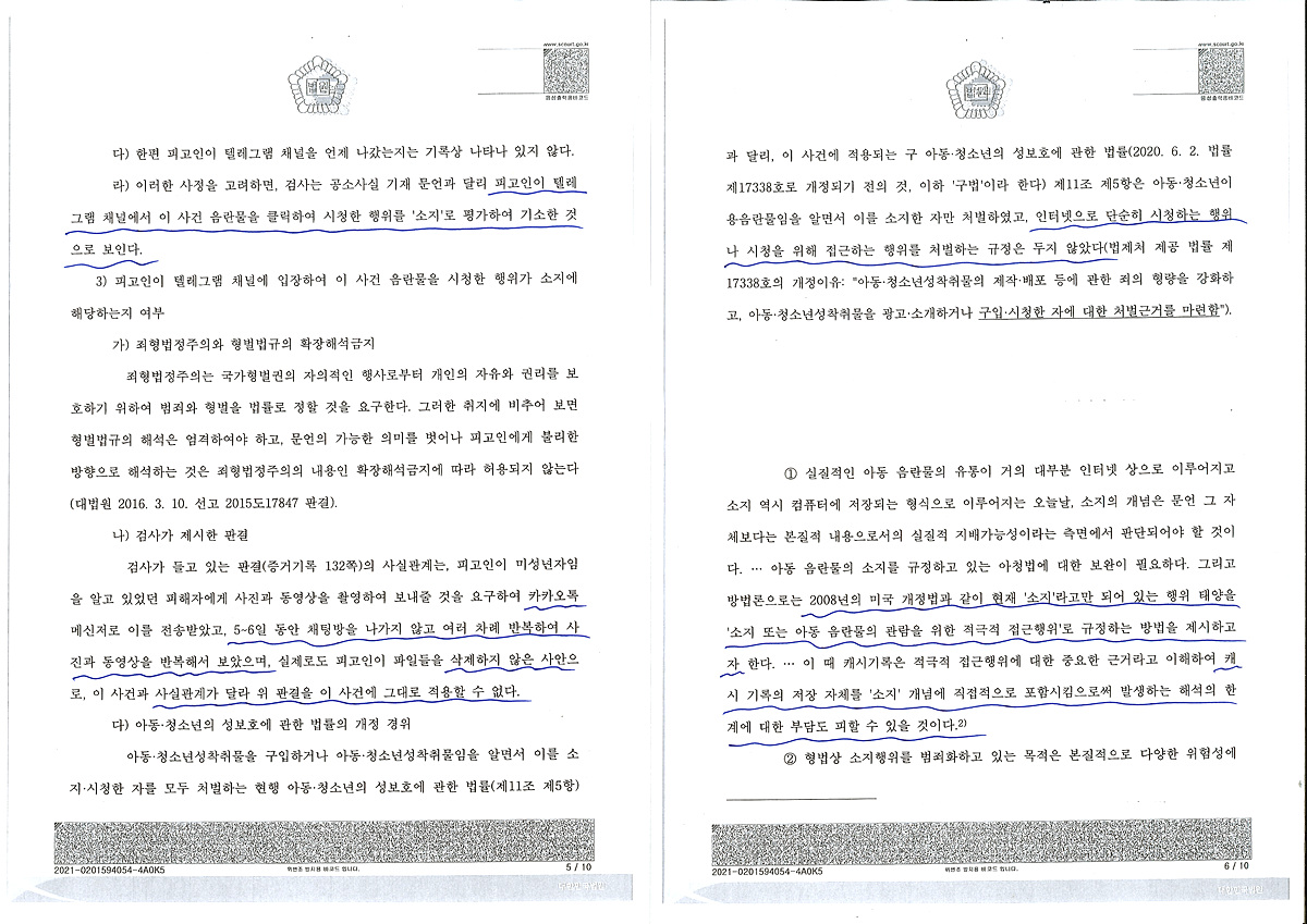 1. 아청물이 존재하는 텔레그램방에 장시간 있었다는 것 자체가 소지라고 보고 있고 이에 대한 판례(서울서부지법 2016노844 판결)가 있다는 것
