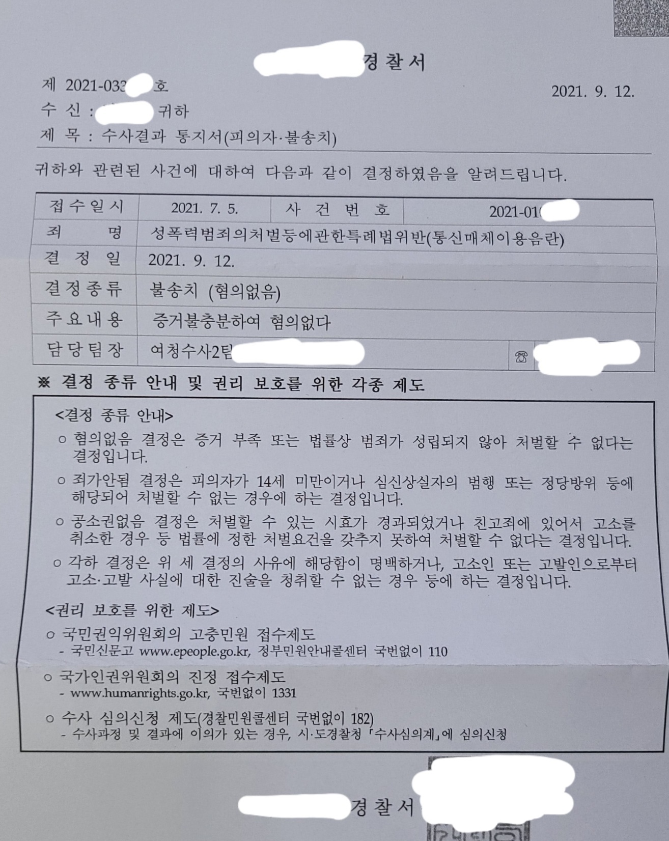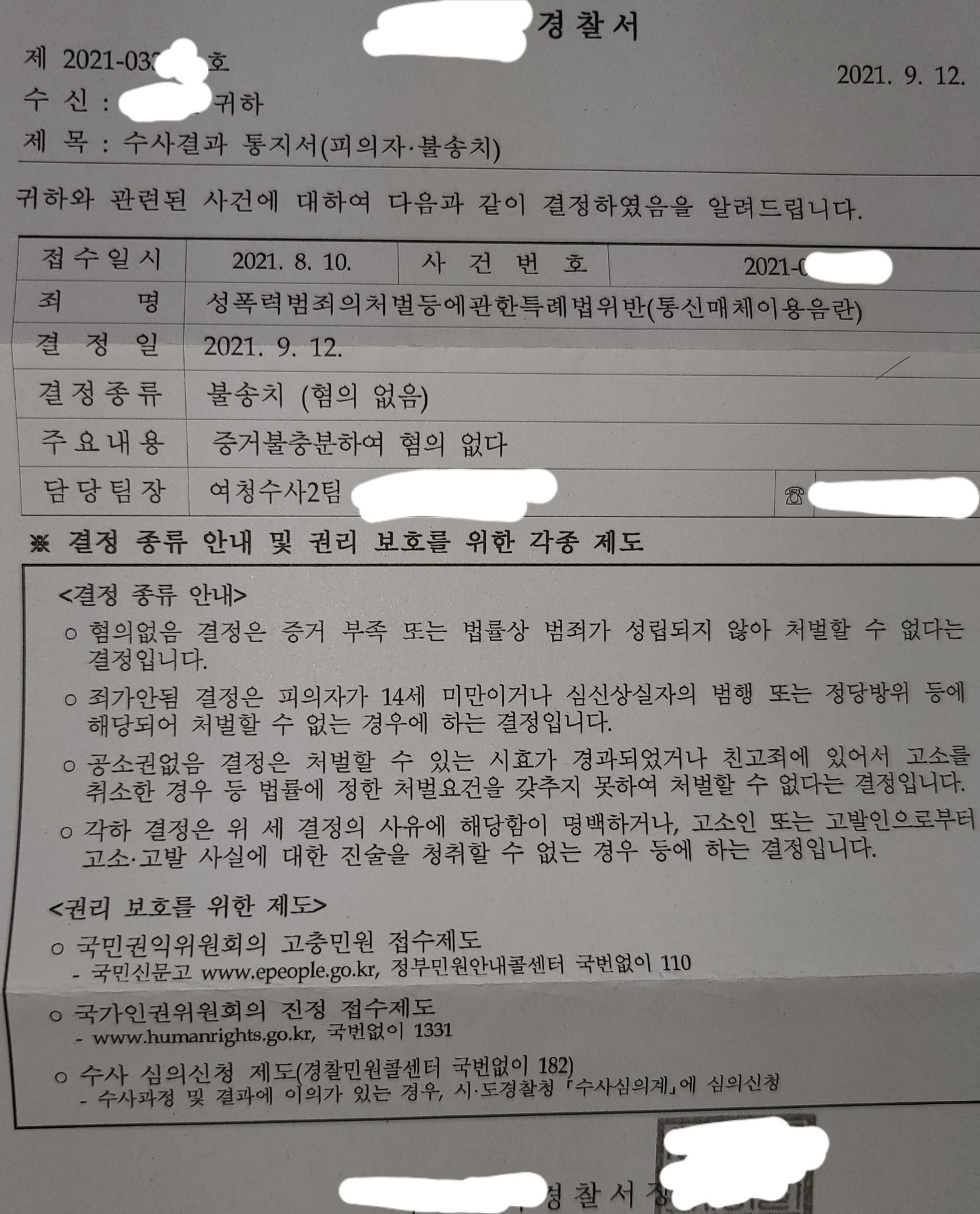 2. 메아리의 경우 범죄인정안됨 불송치 결정을 받았음