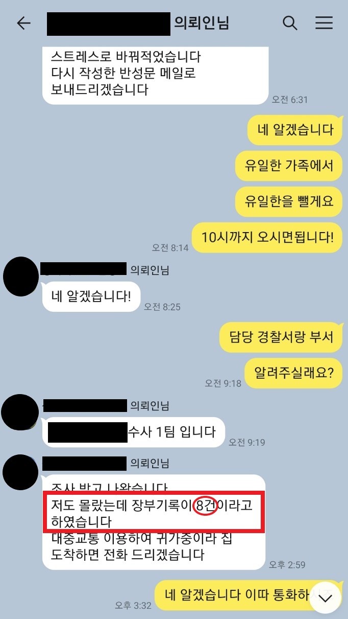 (사건이 종결된 당일 의뢰인과의 대화)