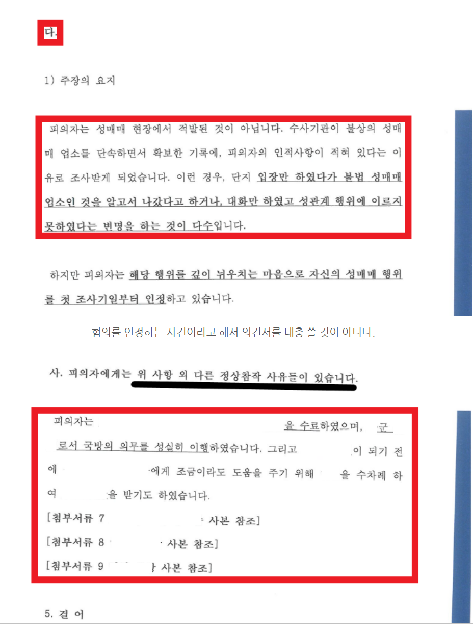 누누히 강조하지만 피의자의 정상참작 사유를 상세히 담은 변호인의견서 작성은 - 변호사 업무의 90%를 차지할 정도로 중요합니다. 변호인의견서에서 아래의 정상참작 사유들을 상세히 정리하여 제출하였습니다.