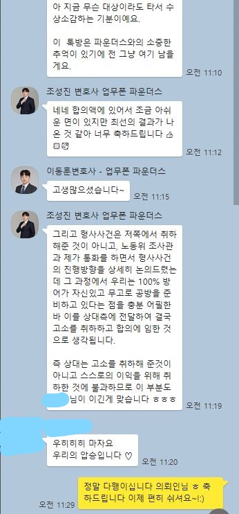 걱정하던 노동위에서 오히려 합의금을 받아내는 합의를 이끌어 낼수 있었고