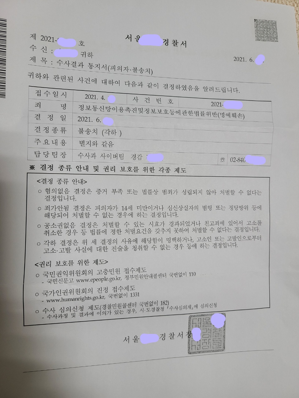 더불어 형사 불송치(각하) 및 민사 소취하라는 최선의 결과를 이루어 낼 수 있었습니다.