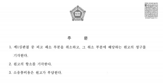 제2심에서는 제1심의 결론을 뒤집고 피고(의뢰인)의 전부 승소 판결이 내려졌습니다.