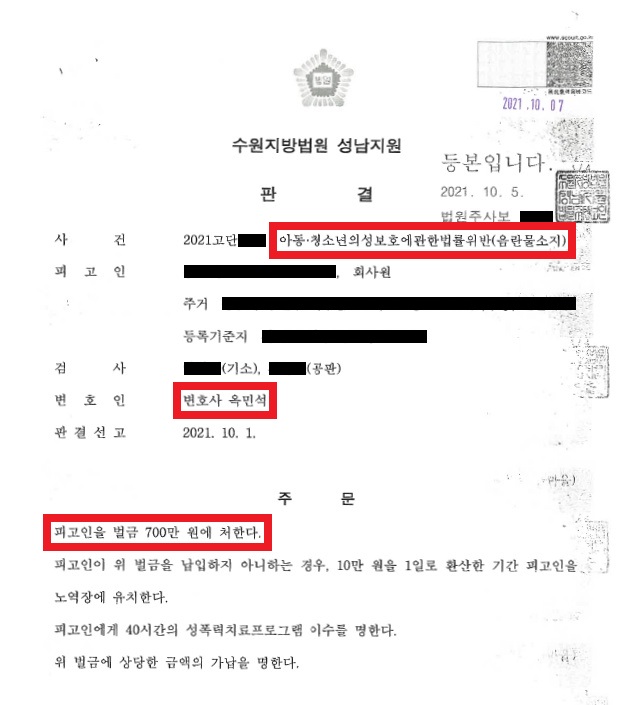 [관련 법령: 아동·청소년의 성보호에 관한 법률]