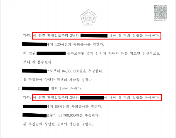 위와 같은 변호인의 노력을 통하여 의뢰인들은 실형을 면하고 집행유예의 선고를 받을 수 있었습니다.