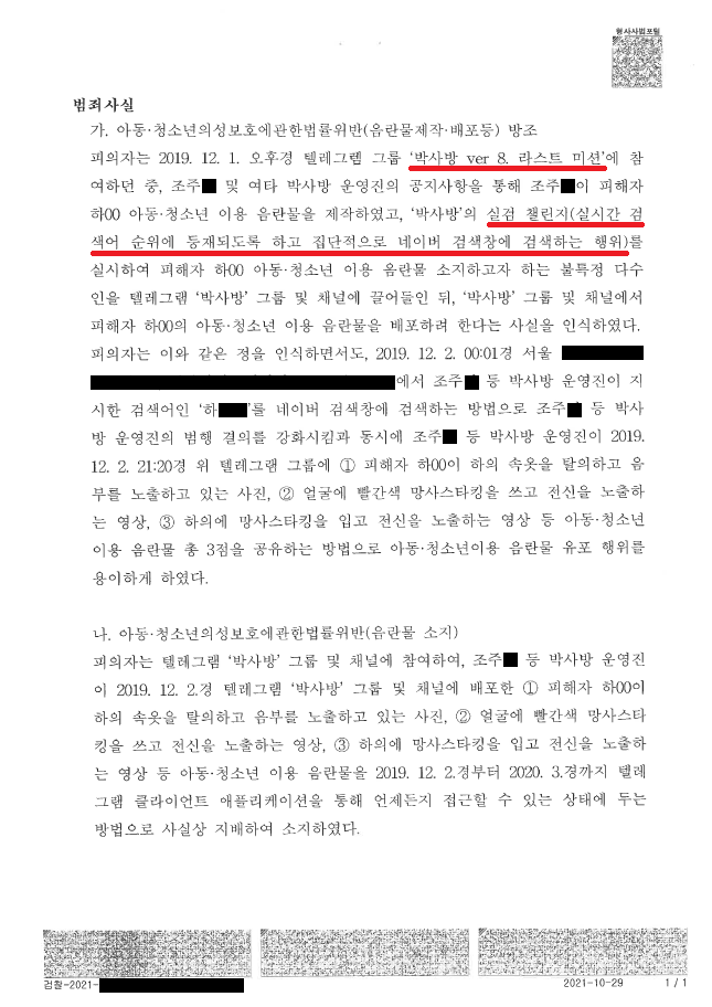 재수생 A씨는 수능을 마치고 텔레그램을 하며 시간을 보내던 중 '박사방' 텔레그램 그룹을 알게 되었습니다. A씨는 2019. 12. 1.경 '박사방' 텔레그램 그룹에서 '박사방' 운영진의 지시에 따라 키워드 검색을 수행한 뒤, 그 대가로 '박사방' 아청물을 전송받았습니다.