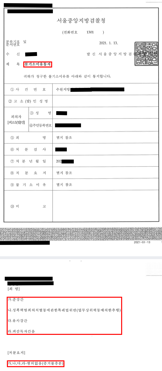 변호인의 위와 같은 조력을 통하여 의뢰인은 혐의없음 처분을 받을 수 있었습니다.