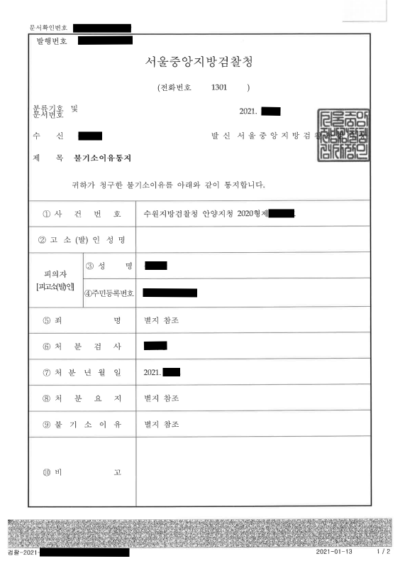 상담 전부터 이미 수사가 상당히 진행된 상태였기 때문에 담당수사관은 고소인 명의의 합의서와 고소취하서를 제출하였음에도 그 진위를 의심하는 상황이었으나, 제가 직접 수사관을 찾아가 변호인의견서를 제출하며 그 취지를 설명하는 등 노력한 끝에 모든 혐의에 대하여 혐의없음(증거불충분)처분을 받아낼 수 있었습니다.
