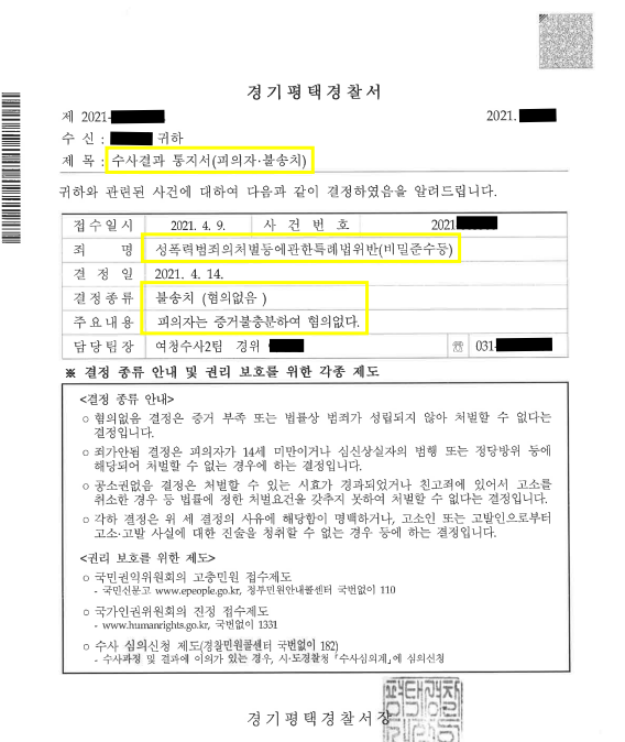 불송치(혐의없음)