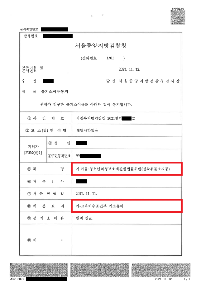 이러한 저의 조력을 바탕으로 A씨는 최근 성착취물소지 사건에서 기소유예 처분은 사실상 불가능해졌음에도 불구하고 '기소유예' 처분을 받음으로써 성범죄자가 될 위기에서 벗어날 수 있었습니다.