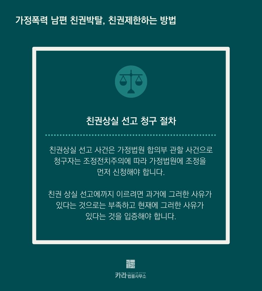 자녀 입장에서는 폭력 아버지의 그늘에서 완벽히 벗어나기 위해서는 '친권상실 심판청구' 소송을 제기하는 방법이 있습니다.