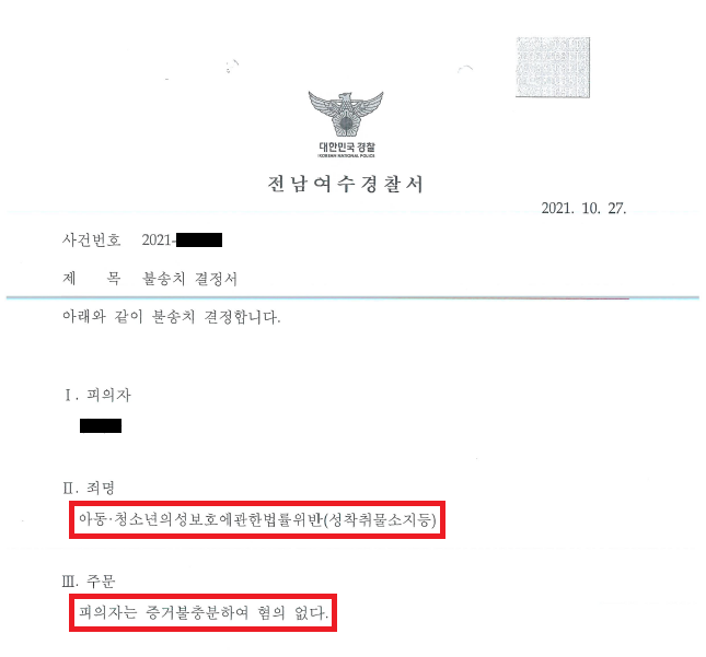 이러한 저의 조력을 바탕으로 A씨는 "몰랐다"라는 주장은 통하지 않는 상황임에도 불구하고 '불송치(혐의없음)' 결정을 받음으로써 억울한 누명에서 벗어날 수 있었습니다.