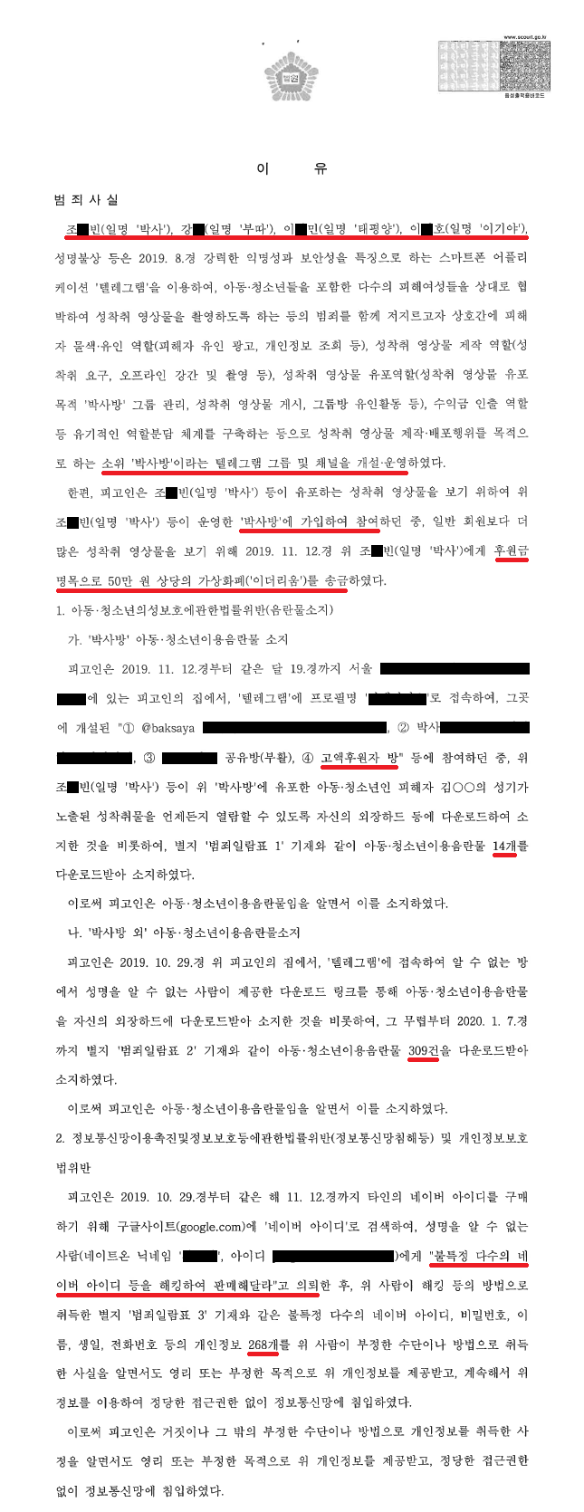얼마 뒤, 2020.초경 '박사방 사건'이 언론을 통해 보도되면서 사회적으로 큰 문제가 되기 시작하였습니다. A씨는 2020. 4. 23.경 박사방 유료회원으로 활동한 혐의로 압수·수색 영장을 집행당하게 되었고, 2020. 7. 16.경 기소되어 재판을 받게 되었습니다.