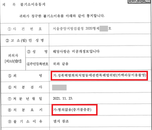 - 검사 무혐의 처분