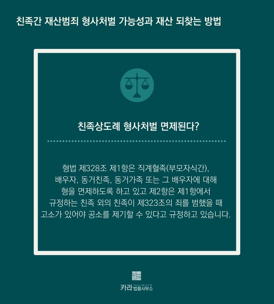 형법에는 친족간 재산 범죄에 '친족상도례'라는 특례 규정이 있습니다.