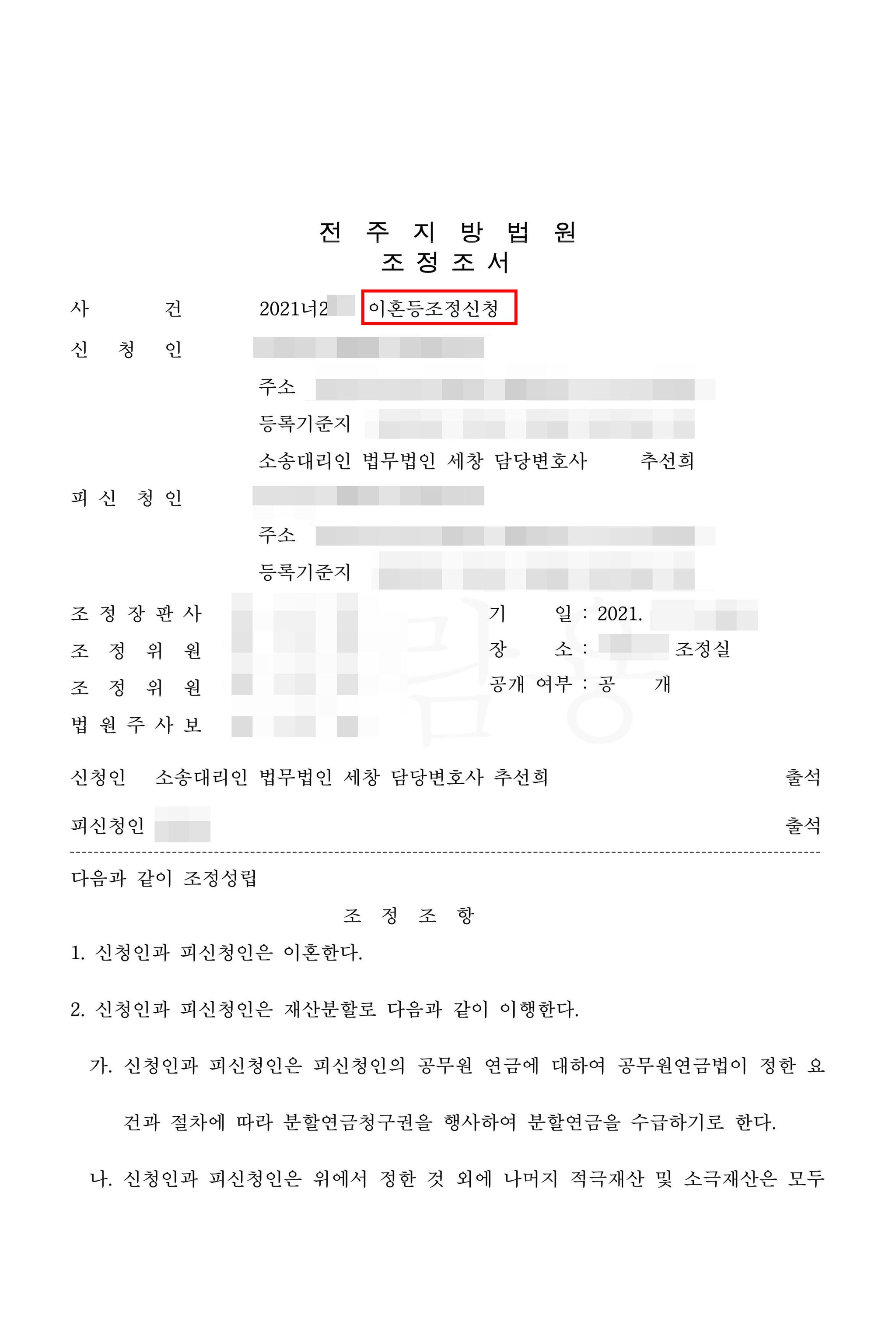 의뢰인은 무엇보다 공무원인 남편의 연금을 분할받고 싶다는 의사를 피력하였습니다.