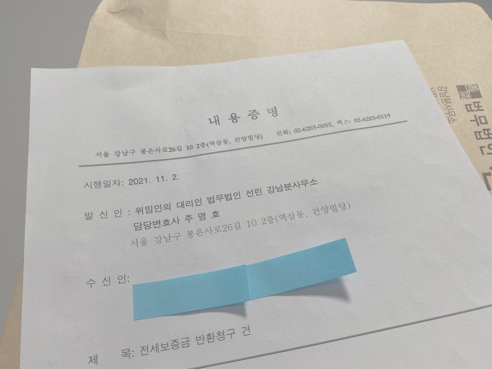 즉 다음 임차인이 들어오지 않은 사정은 임대인의 사정일 뿐이고 임대인의 보증금반환의무는 면제되지 않습니다. 따라서 위와같은 사정에 구애받음이 없이 임차인은 변제를 독촉하는 내용증명을 발송하면 됩니다. 이 내용증명의 내용은 임대차의 종료사실, 반환보증금의 존재와 금액, 반환기일 등을 기재하시면 됩니다. 이 내용증명을 통해 빠른 변제 독촉과 더불어 소송과정에서 임차인의 의사표시 내용을 증명하는 효과적인 증거로도 활용할 수 있습니다. 그리고 이 내용증명을 변호사 명의로 보낸다면 상대방이 심리적 압박을 심하게 느껴 임의변제로 사건이 조기에 해결될 수도 있습니다.