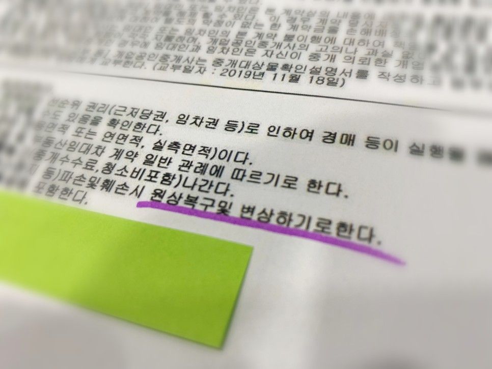 위 법률규정에 근거하여 통상 임대차 계약서에는 임대차계약이 종료된 경우 임차인은 임차주택을 원래의 상태로 복구하여 반환하고 동시에 임대인은 임차인에게 보증금을 반환한다는 규정을 합니다. 여기서 원래의 상태로 복구하여 반환한다는 의미가 중요한데 이에 대한 판례를 살펴 보겠습니다.