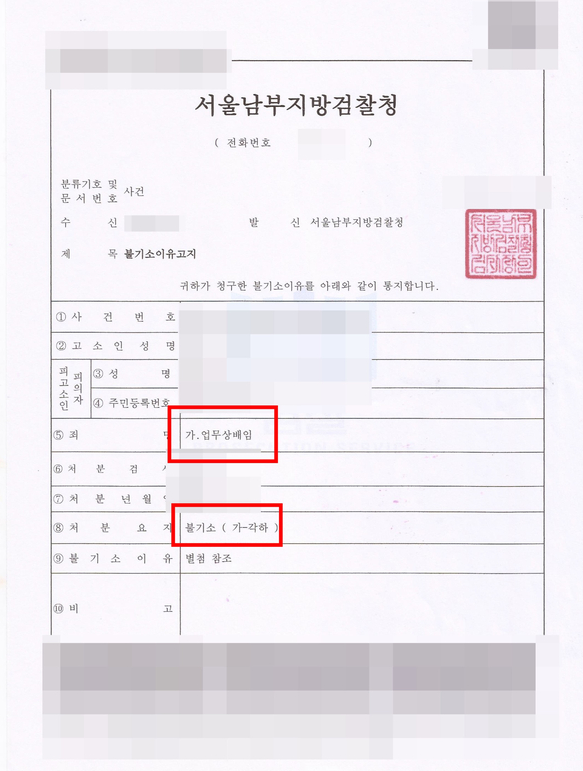본 변호인의 주장대로 의뢰인은 각하 처분을 받았습니다.