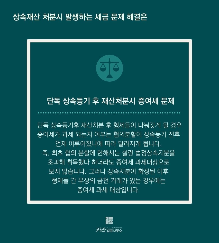 단독 상속등기 후 재산을 처분해 형제들에게 나눠주면 증여세 내야 하나요?