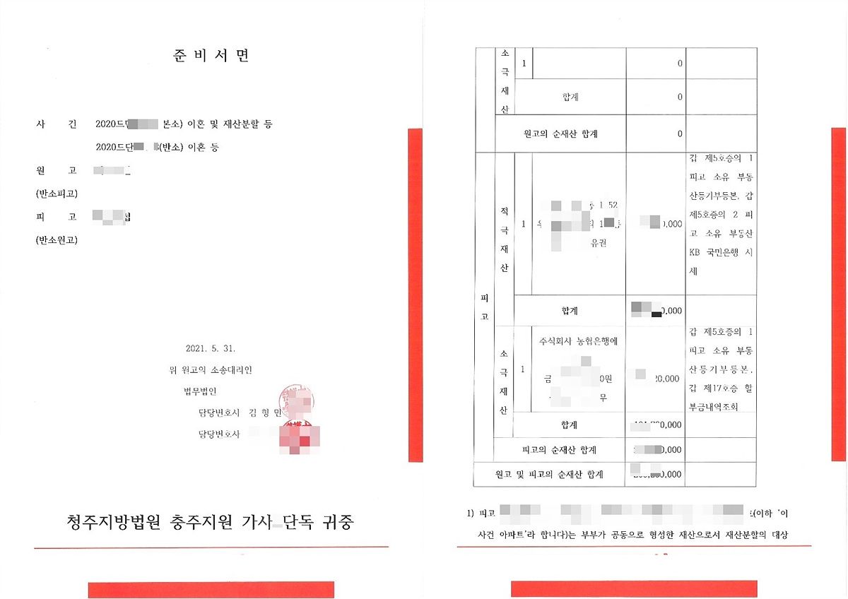 재산분할의 대상이었던 부동산 아파트에 대하여 "부동산 가격의 급격한 등귀로 인한 소득과 같은 행운은 원·피고에게 공동향유케 함이 상당하다."라는 판례의 태도를 감안했을 때 원고인 의뢰인의 부부공동재산 형성 및 유지에 대한 기여도는 적어도 40% 이상이라는 것을 적극 주장하였습니다.