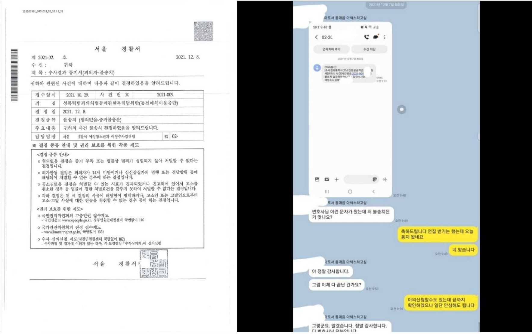2. 성폭력범죄의 처벌 등에 관한 특례법 통매음 불송치결정 2건